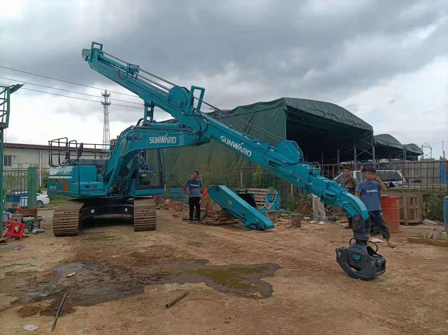 The excavator’s telescopic boom has low cost and high operating efficiency. It can be designed and produced according to different working conditions. The telescopic boom of forestry excavator is 20 meters to 25 meters; the telescopic boom of municipal excavation is designed to be 20 to 32 meters. Subway and caisson excavation depth. It can be equipped with bucket and shell bucket configuration, high quality, high operation efficiency, and reduce misoperation; use excavator to achieve good operation efficiency; the length of the modified arm is between 12-32 meters (can be divided into two sections , three-section, four-section oil cylinder internal and external telescopic boom customization), the recommended size of the modified excavator is 12-38 tons of excavator modification;